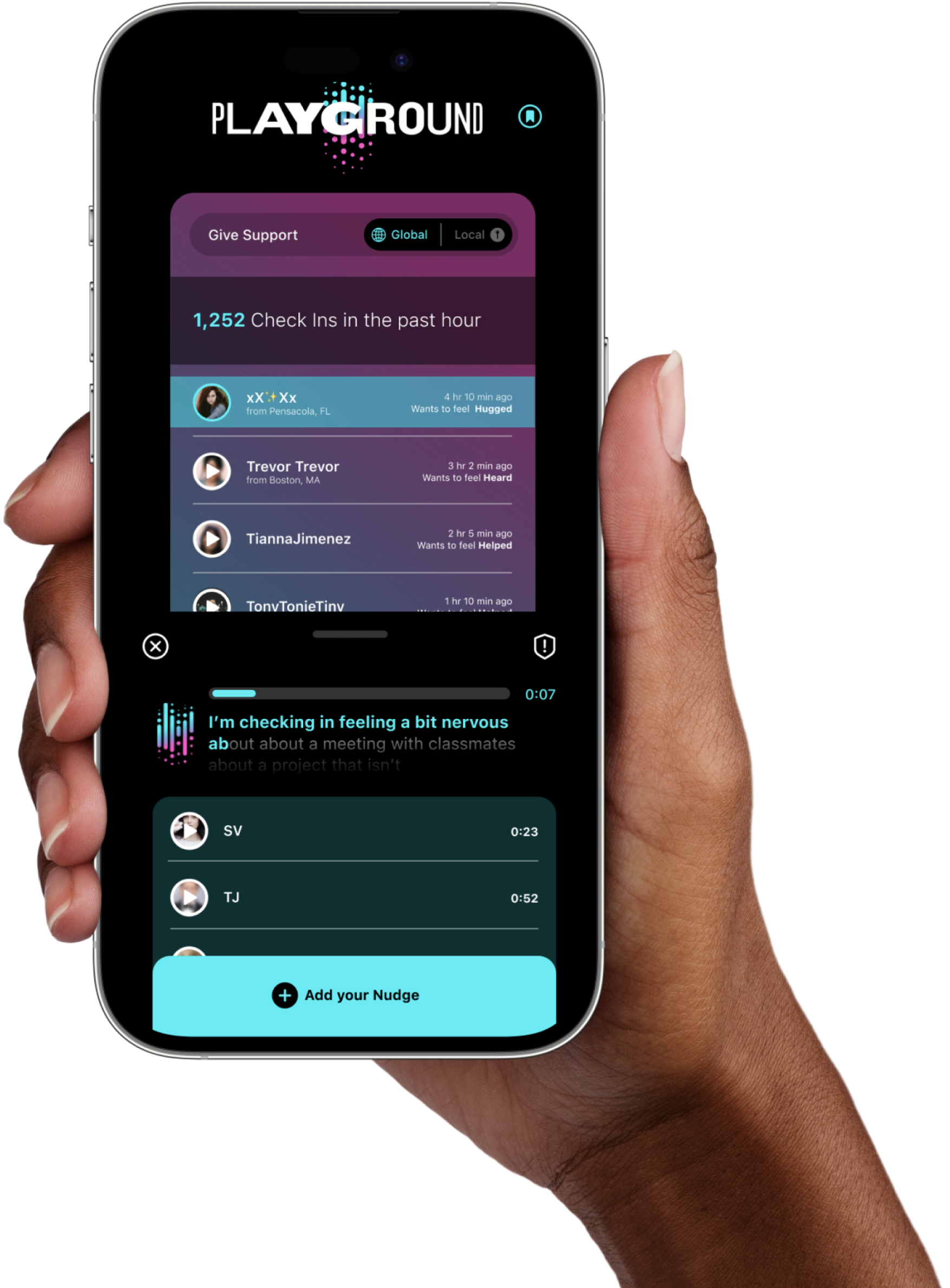 Experience a new way to connect with, get support, and help others. Download Playground now and become a part of our supportive community.